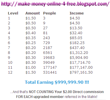 | Commission per ref upgrade | $0.50 | $2.00 per direct referral plus Matrix Commission (up to 12 levels | |